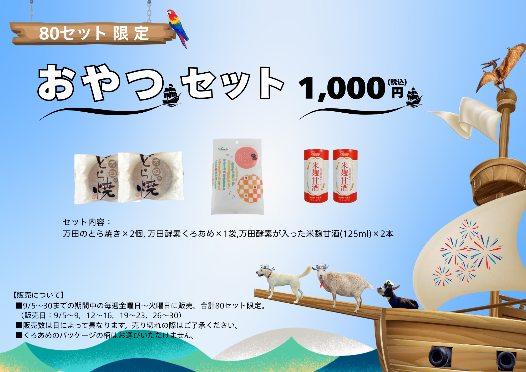 □9/5~30までの期間中の毎週金曜日~火曜日に販売。合計80セット限定。