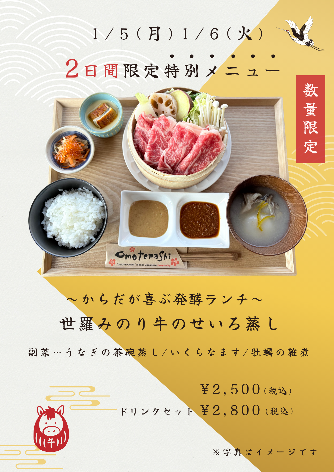 HAKKOゲートCaféより1月5日(月)6日(火)限定メニューのお知らせ!